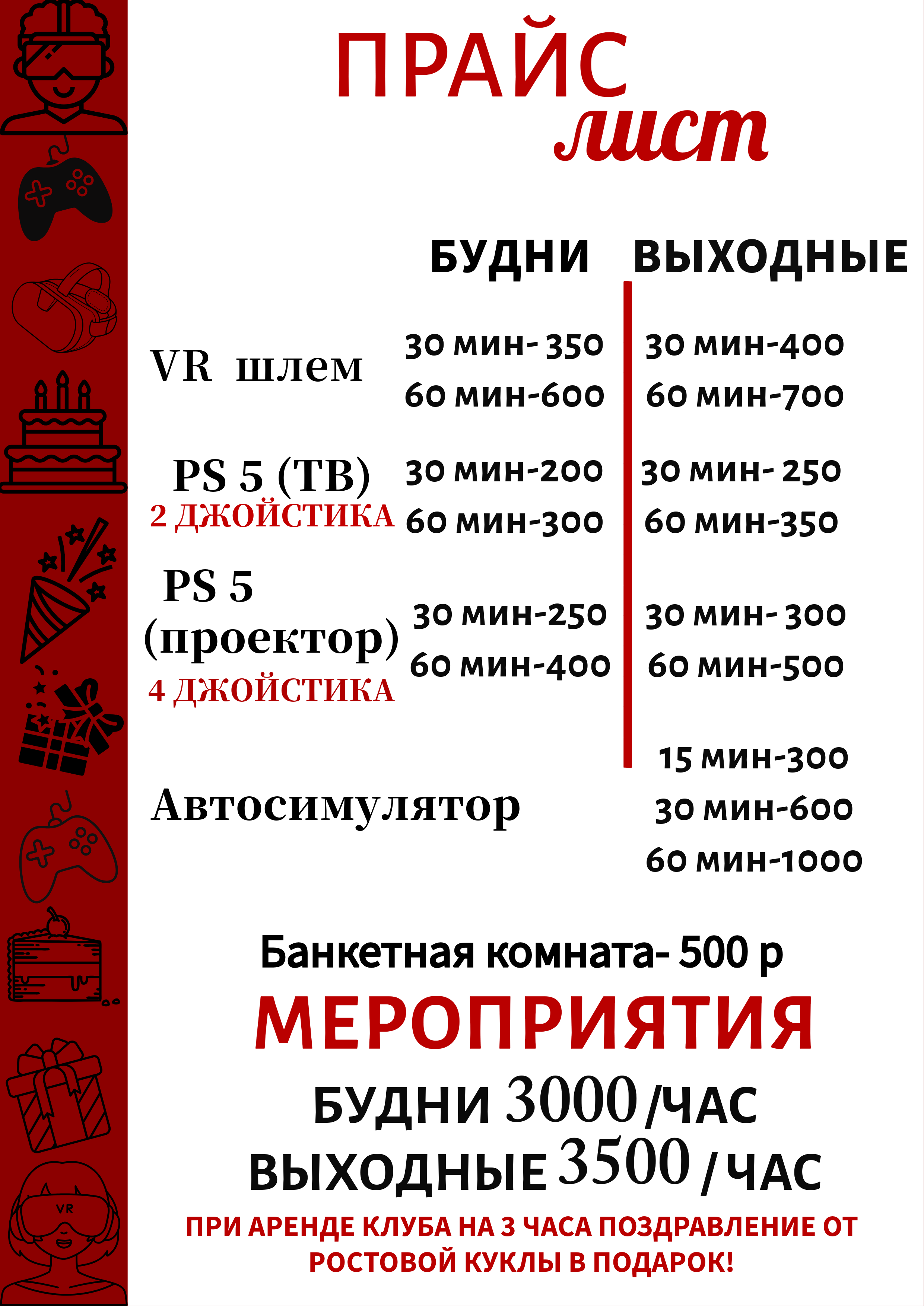 Стоимость указана за час аренды клуба, весь клуб только для Вас.